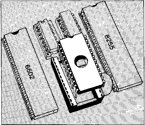 ![]() Installing the Word Pack ROM: the ROM plugs into an available socket on the main board of the Atom, the utility ROM socket. It is located towards the centre of the board between the 6502 main processor and the 8255 IC. Make sure the notch on the WordPack ROM faces the back of the board (matching the other ICs), and don't bend the pins by forcing it in. |